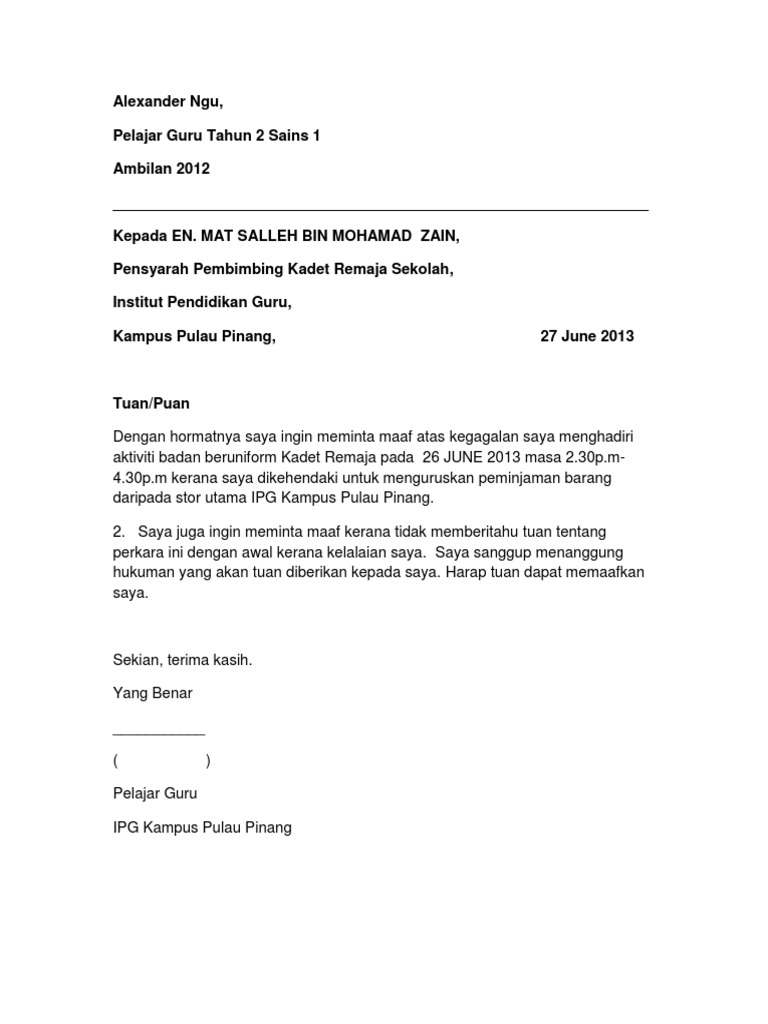 Doc Surat Permohonan Maaf Rey Pras Academia Edu Otosection